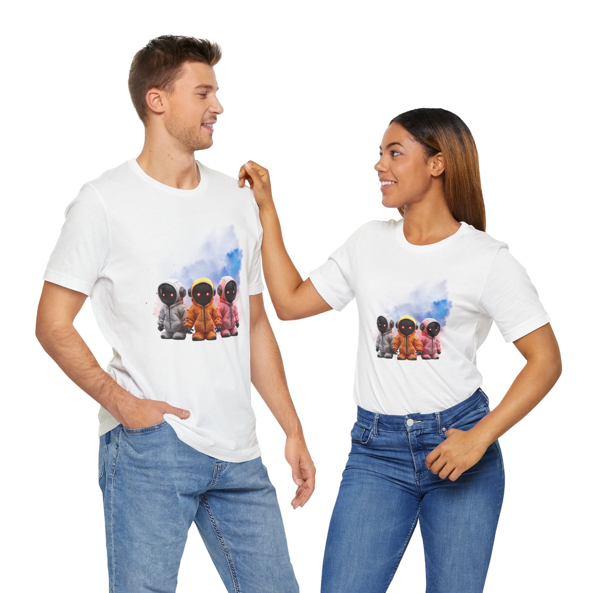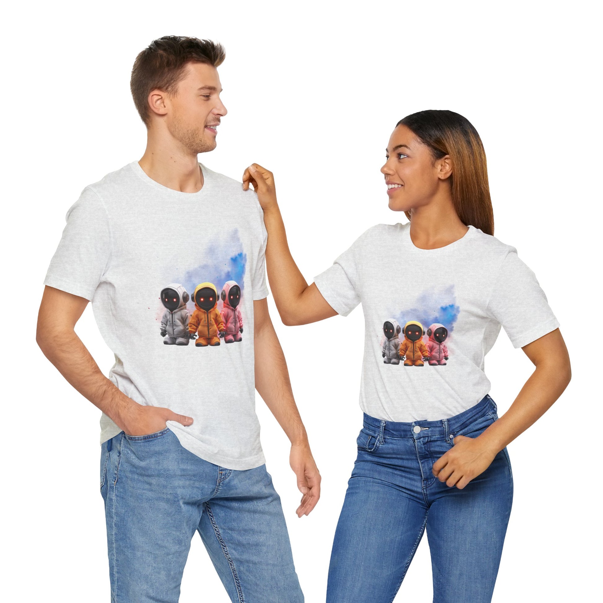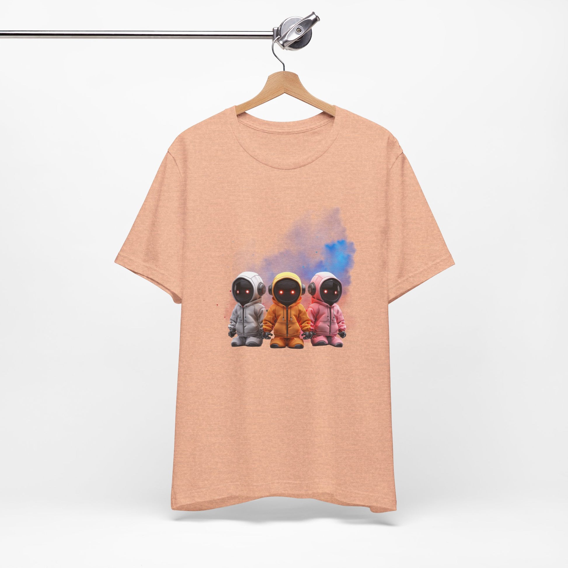 Featuring a colorful trio of bots against a bright, futuristic splash, this shirt turns heads and sparks conversations.