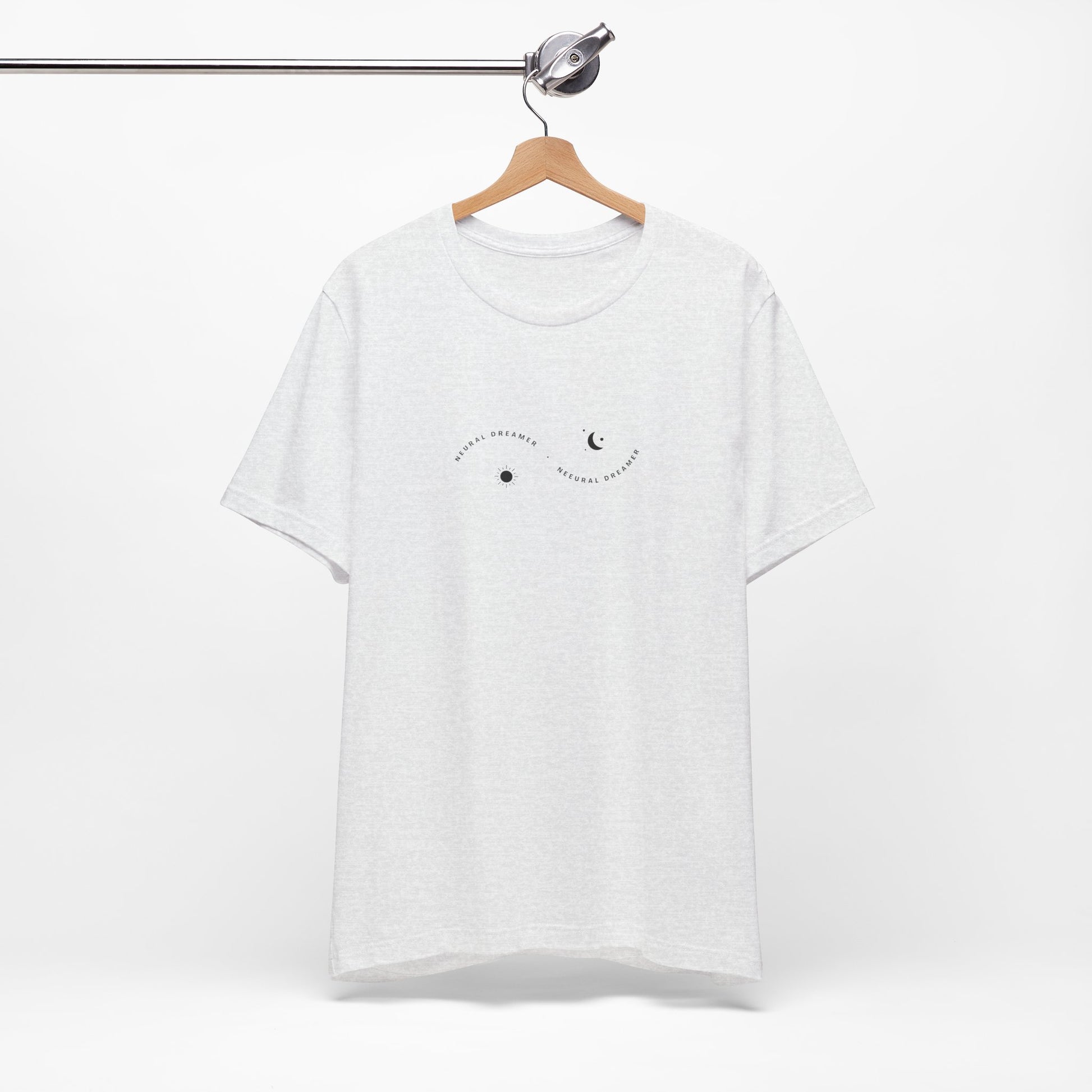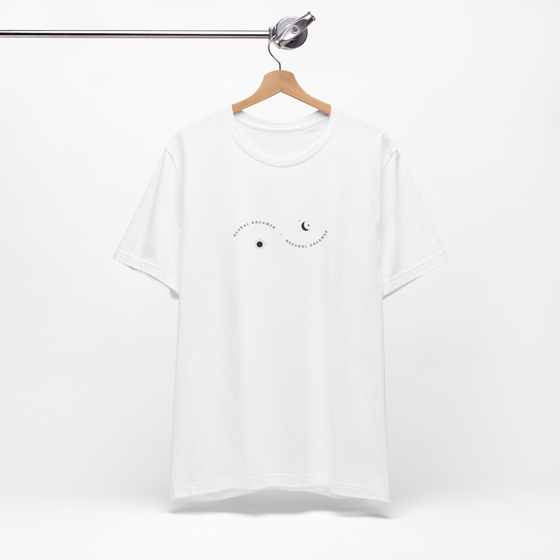 Neural Dreamer – for those who code by day and create by night. This minimalist front print features subtle sun and moon symbols, representing balance, rhythm, and the dual nature of creativity and logic.